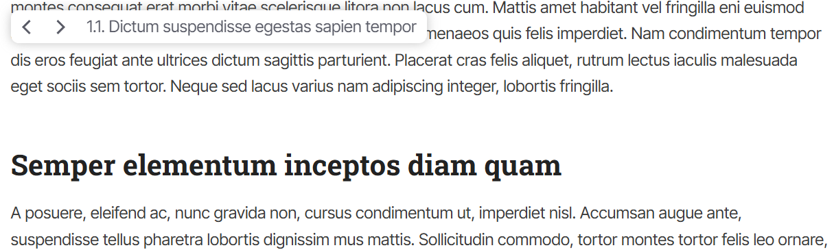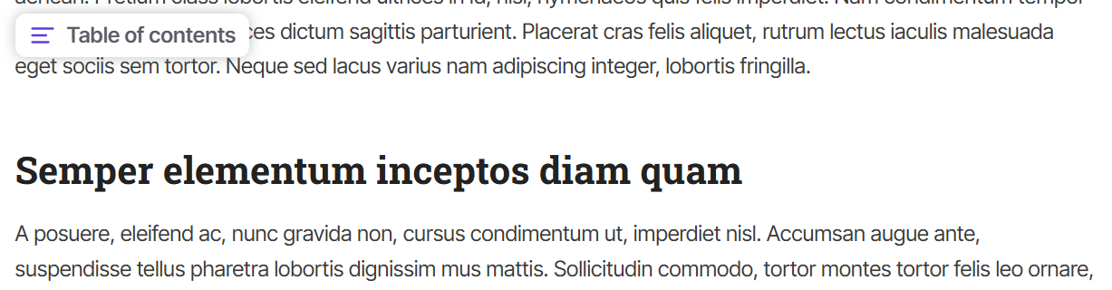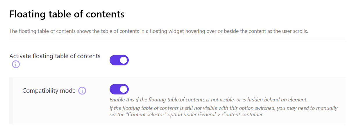 Originally, the floating TOC was only available with the “active heading” mode. This mode dynamically updates the current section the reader is viewing.
