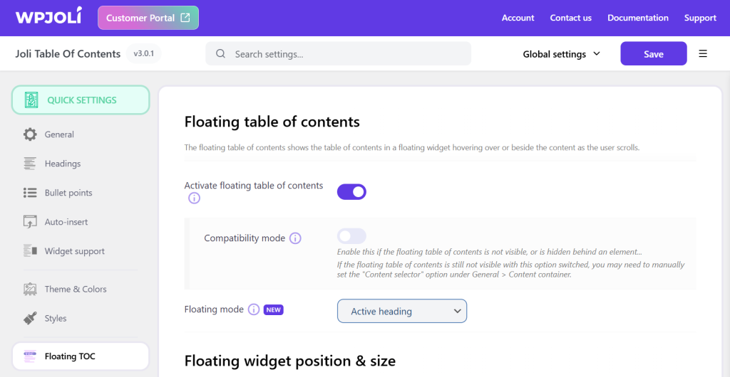 Floating modes for the Floating Table of Contents